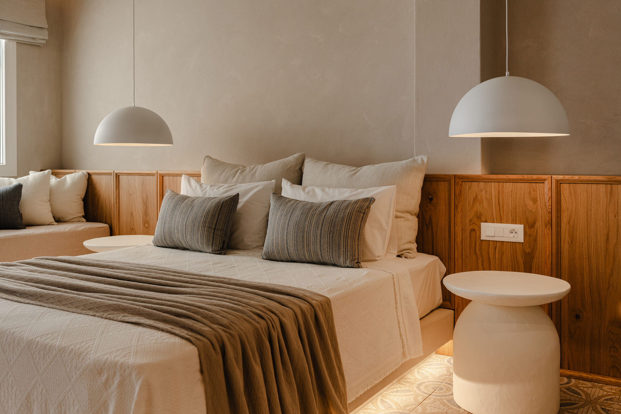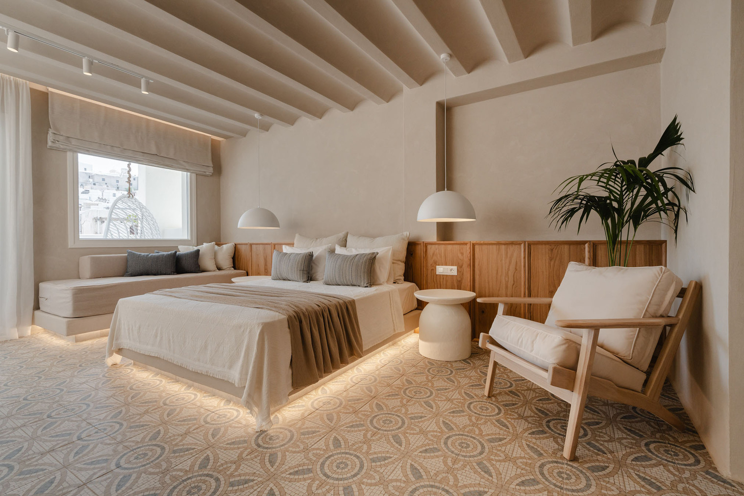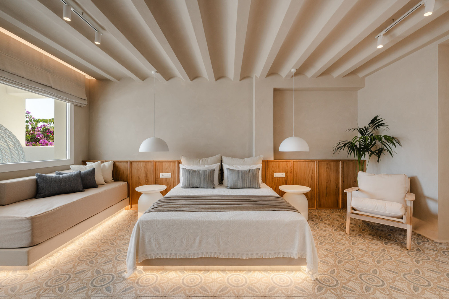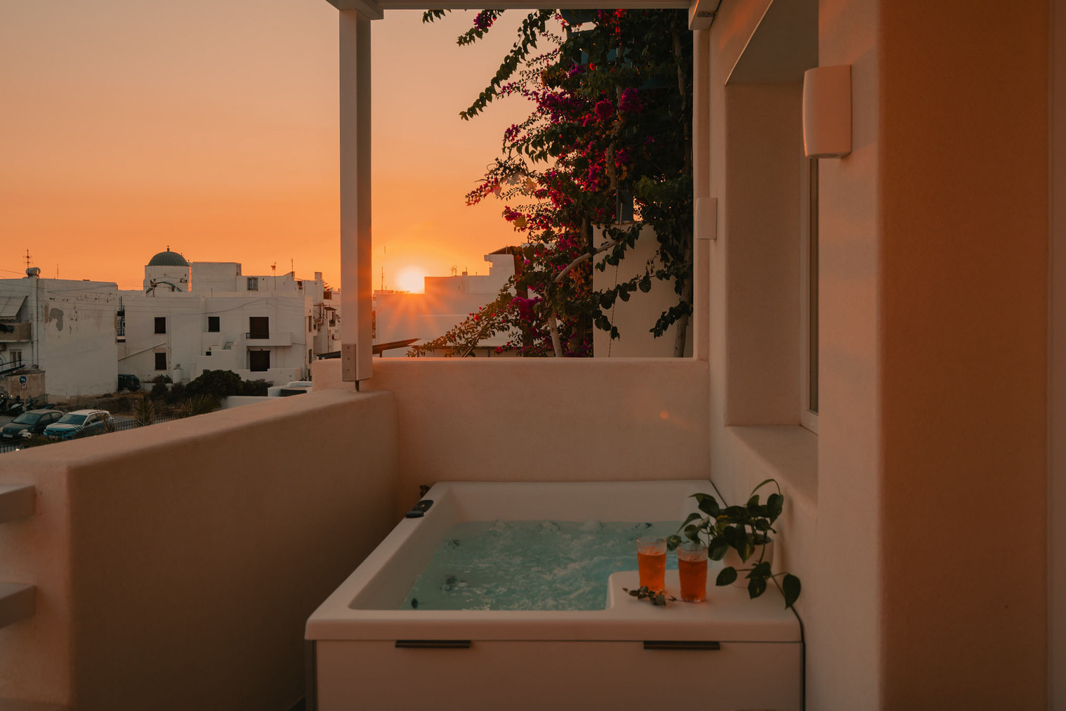 Our Luxury Suite in Naxos Town offers the perfect blend of privacy, comfort and refined Cycladic elegance. Designed for couples seeking a relaxing island escape, the suite features a private outdoor hot tub with stunning views of the Venetian Castle, a separate bedroom, and modern amenities that ensure a memorable stay in the heart of Naxos.